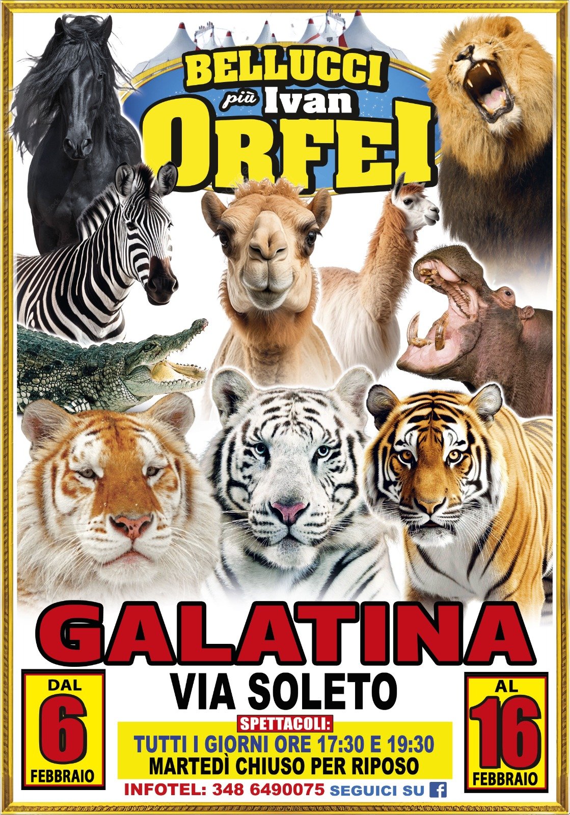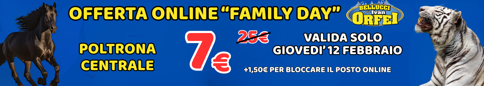 - 🎫 Ritiro del biglietto: il pagamento del posto e il ritiro del biglietto avvengono esclusivamente presso il botteghino del Circo Bellucci.