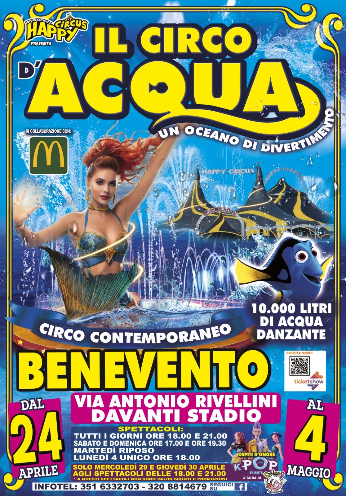 - 🎫 Ritiro del biglietto: il pagamento del posto e il ritiro del biglietto avvengono esclusivamente presso il botteghino del Circo D'Acqua.