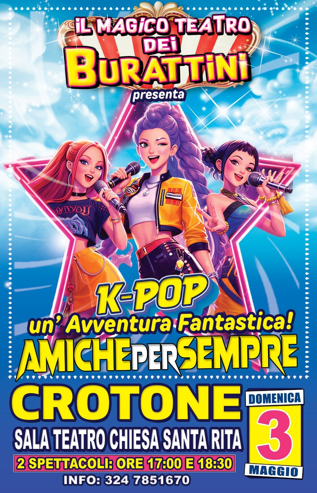 ✨ Vivi un’esperienza unica davanti al nostro palcoscenico incantato, dove i burattini prendono vita in uno show speciale: “K-Pop Demon Hunters – Amiche per sempre”, una storia piena di energia, amicizia e avventure indimenticabili.
